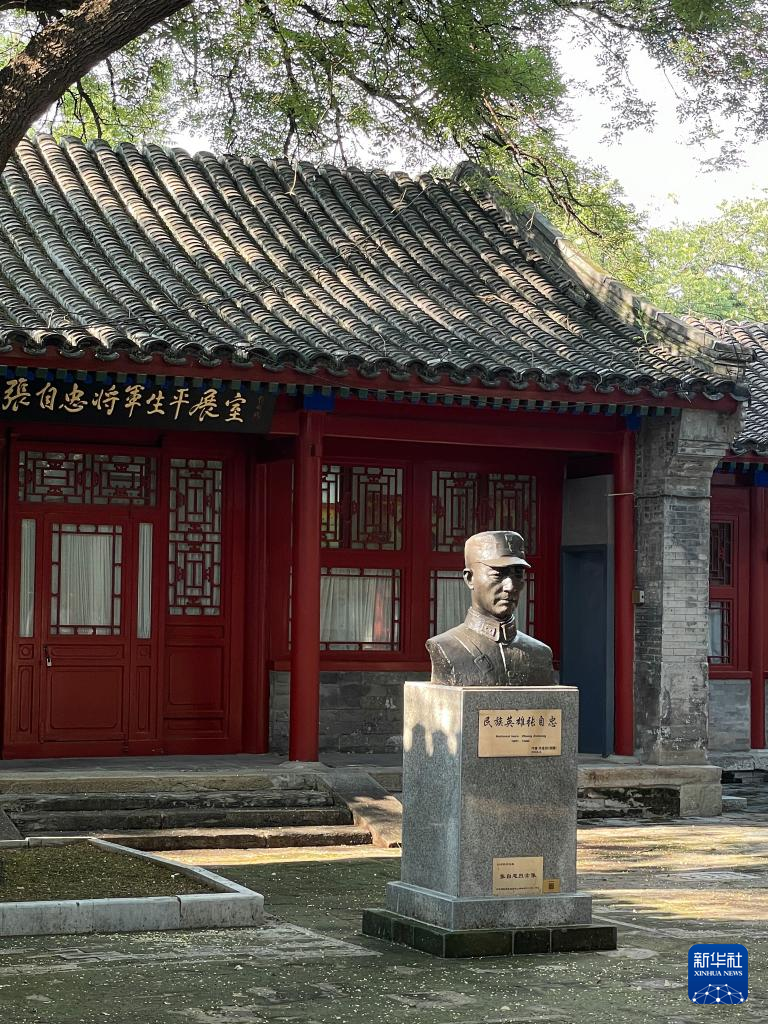 這是位于北京市自忠小學內的張自忠雕像(8月6日攝,手機照片)新華社記者 陳鐘昊 攝