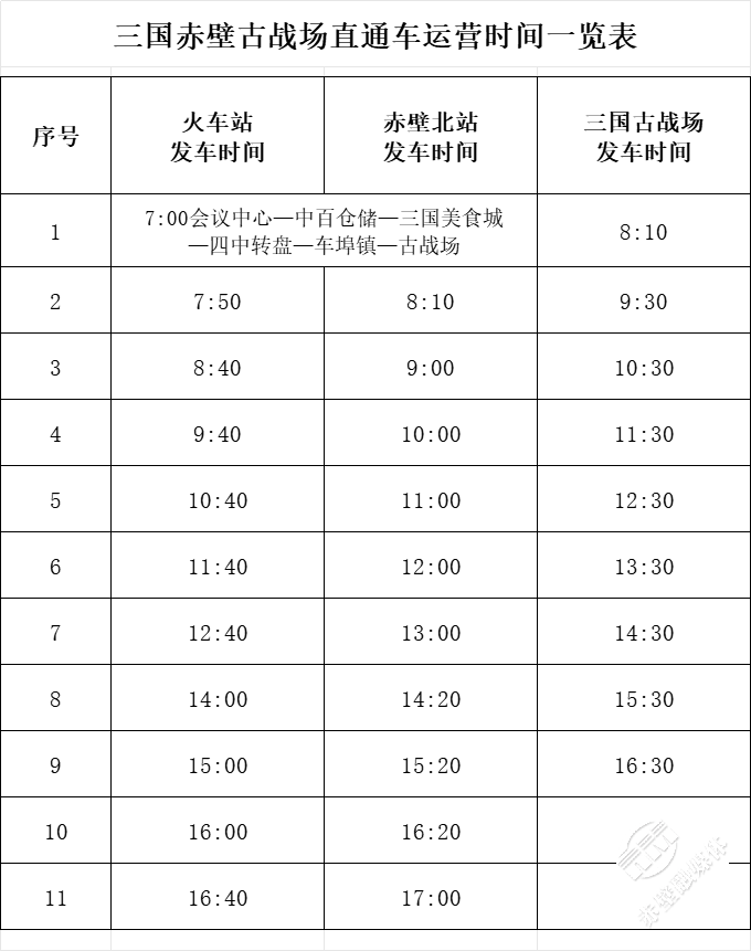 線路:抵站后可選擇旅游直通車或打車至三國赤壁古戰場