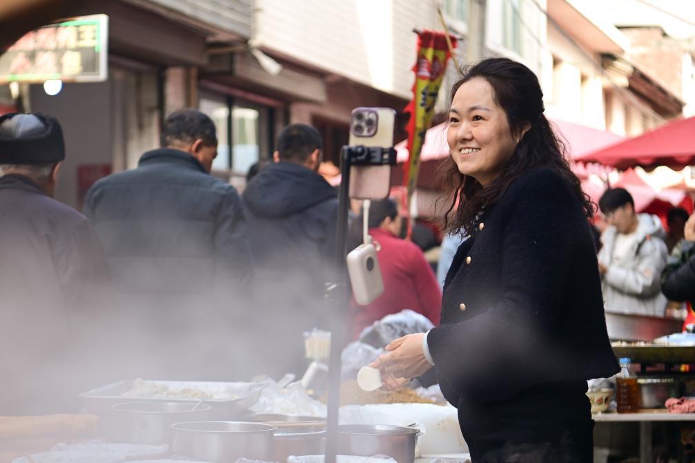 本地博主“小蔥”操著一口陜西方言,邊走邊介紹:“扎進人堆里頭,就算是摸到咱關中平原最熱鬧的脈搏了!趕集趕的就是這份撲面而來的鮮活!”