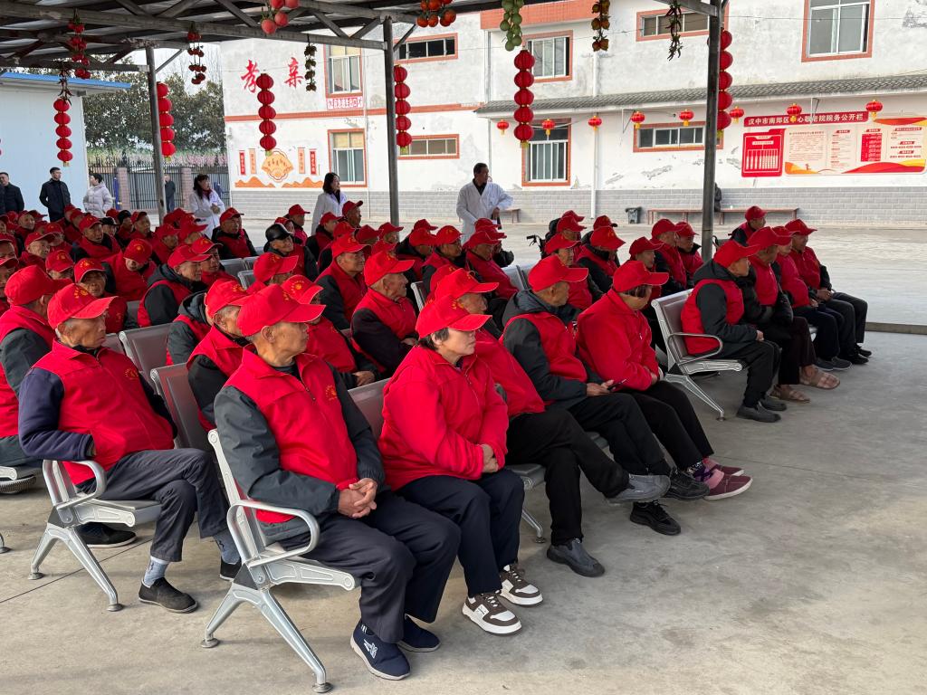 距離開演還有半個小時,敬老院內文化廣場上110個固定座位已座無虛席;三排臨時增加的靠背木椅,也各有其主。