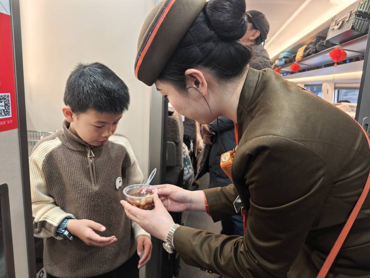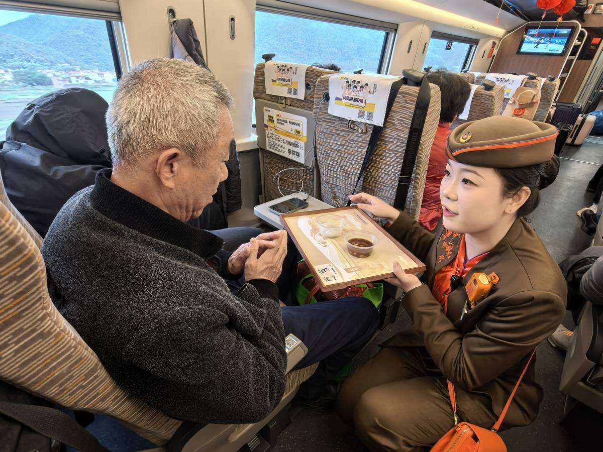 列車員給小朋友送來湯圓。