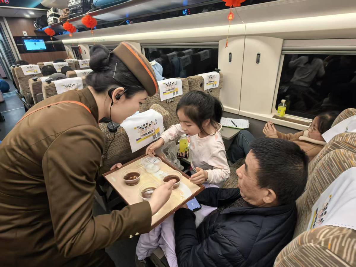 首頁 >> 專題報道 >> 2026專題 >> 2026網絡中國節元宵 >> 動態 >> 正文3月2日,正值元宵節前夕,由武漢客運段南線動車組車間擔當值乘的G391次列車車廂內張燈結彩、暖意融融,列車乘務組精心策劃“情暖高鐵 喜樂元宵”主題慶祝活動。列車員們將傳統民俗文化與暖心客運服務深度融合,與南來北往的旅客共慶佳節、共話團圓,為春日旅途增添了濃濃溫情與別樣年味。活動現場溫馨熱烈,歡聲笑語充盈整個車廂。旅客們紛紛駐足參與互動,手持燈籠、福字與工作人員合影留念,用鏡頭定格高鐵上的溫馨瞬間。小朋友們捧著糖果、提著小燈籠歡呼雀躍,旅客們品嘗著湯圓連連夸贊。車廂內其樂融融,處處洋溢著團圓與幸福的氣息,不少旅客直言這是一次既難忘又暖心的旅途元宵體驗。(湖北日報通訊員 周赟玥 任瑩嬌 攝)