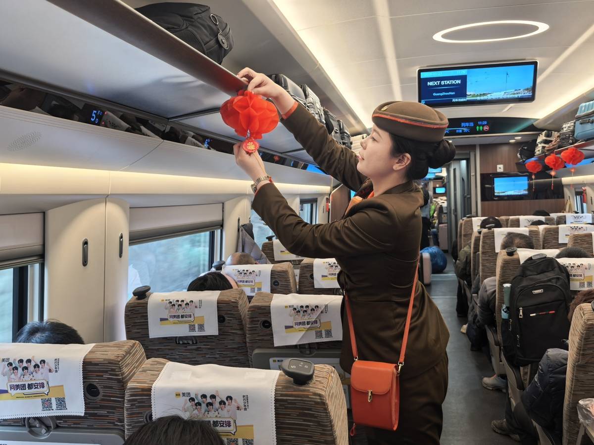 乘務人員精心裝扮車廂。