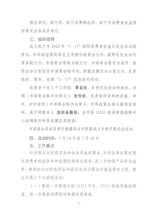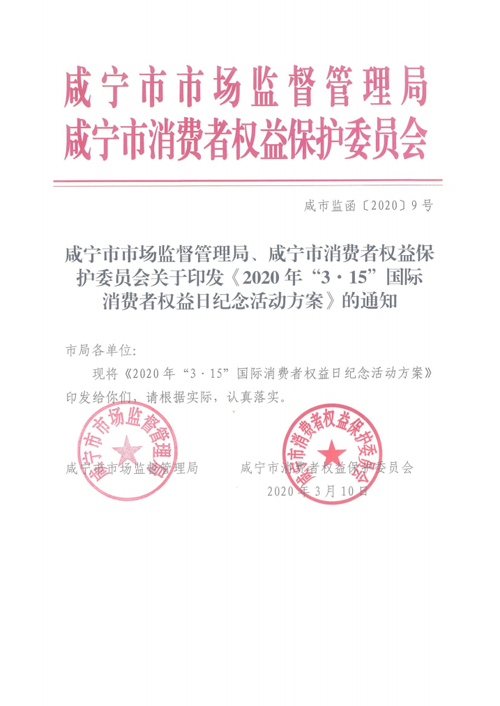 《2020年“3. 15”國際消費者權益日紀念活動方案》的通知