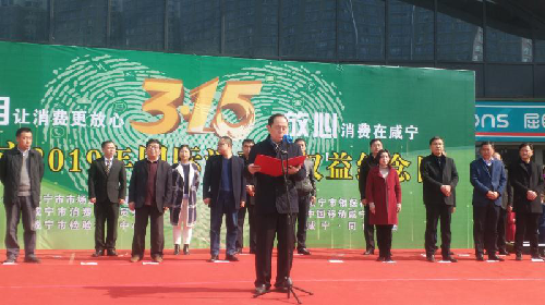 (2019年3月15日,咸寧市市場監管局黨組書記、局長王用新在咸寧同惠國際廣場開啟“信用讓消費者更放心 放心消費在咸寧”為主題的宣傳活動和“放心消費在咸寧”啟動儀式。)