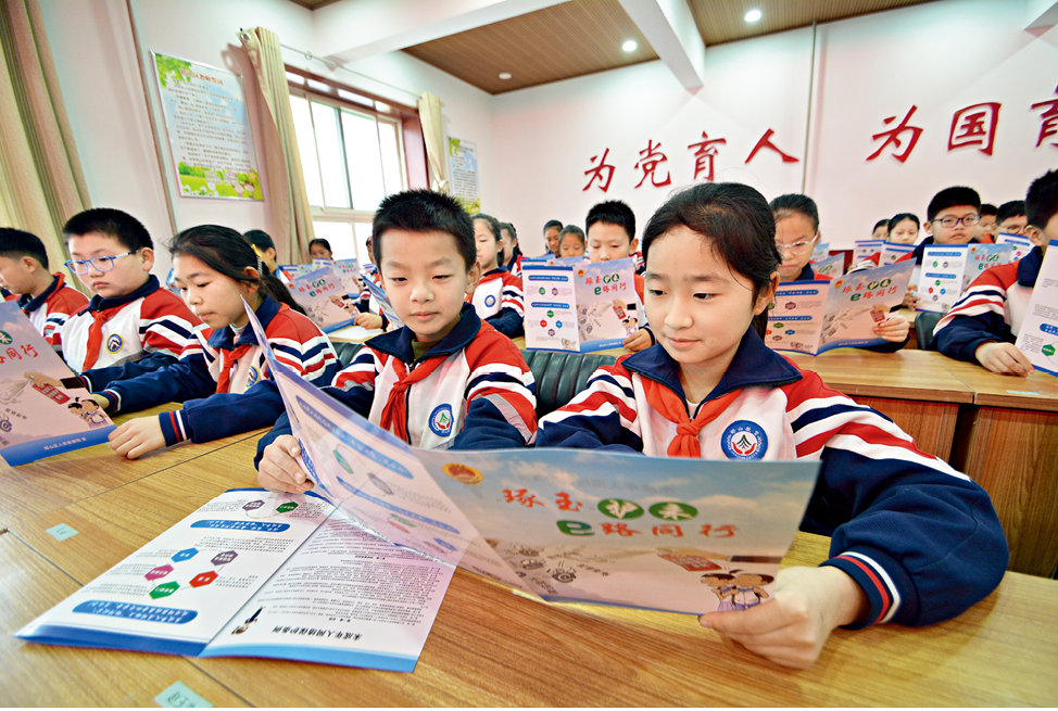 2023年12月29日,河北省邯鄲市,邯山區(qū)開元小學(xué)的學(xué)生們?cè)诮涣鲗W(xué)習(xí)《未成年人網(wǎng)絡(luò)保護(hù)條例》內(nèi)容。