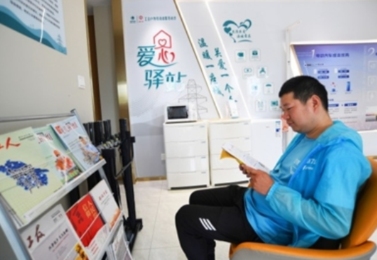 50多平方米的愛心驛站除空調、水、WIFI這些基本配置,還提供臨時休息、熟食加熱、書籍閱讀、手機充電,修車充氣等5大類20多項...