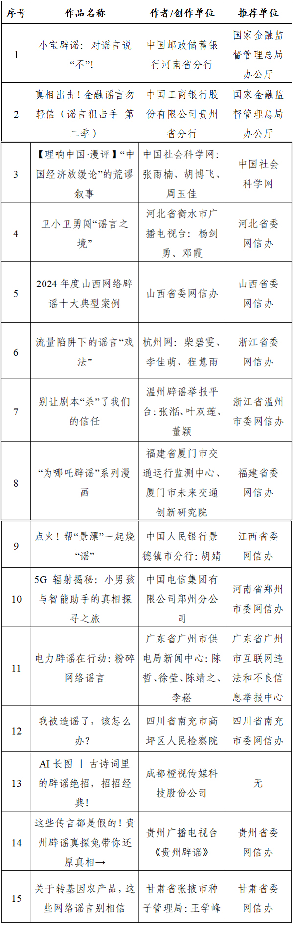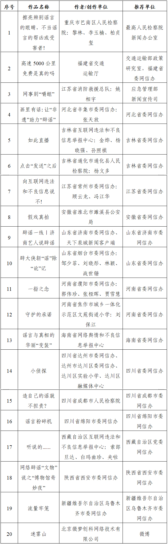 附:“第七屆互聯網辟謠優秀作品”獲獎名單
